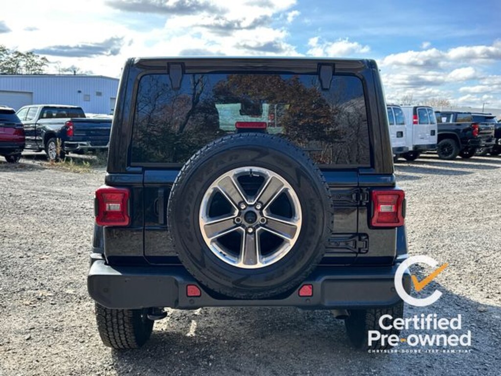 **Certified**, **Clean Carfax**, **4 Wheel Drive**, HEATED LEATHER SEATS, Wrangler Unlimited Sahara, 4D Sport Utility, 3.6L V6 24V VVT, 8-Speed Automatic, 4WD, Black Clearcoat, Black Leather, 3.45 Rear Axle Ratio, 4-Wheel Disc Brakes, ABS brakes, Advanced Brake Assist, Advanced Safety Group, Air Conditioning, Auto High Beam Headlamp Control, Automatic temperature control, Blind Spot & Cross Path Detection, Brake assist, Cloth Low-Back Bucket Seats, Cold Weather Group, Daytime Running Lamps LED Accents, Dual front impact airbags, Dual front side impact airbags, Electronic Stability Control, Emergency communication system: SiriusXM Guardian, Front anti-roll bar, Front LED Fog Lamps, Full Speed Forward Collision Warning Plus, Heated Steering Wheel, Heavy Duty Suspension w/Gas Shocks, Integrated roll-over protection, LED Lighting Group, LED Premium Reflector Headlamps, LED Taillamps, Low tire pressure warning, Navigation System, Occupant sensing airbag, ParkSense Rear Park Assist System, ParkView Rear Back-Up Camera, Power steering, Power Top Quarter Window Storage Bag, Power windows, Quick Order Package 24G (DISC), Rear anti-roll bar, Remote keyless entry, Remote Start System, Removable Rear Quarter Windows, Safety Group, Sky 1-Touch Power Top, Steering wheel mounted audio controls, Traction control, Variably intermittent wipers.