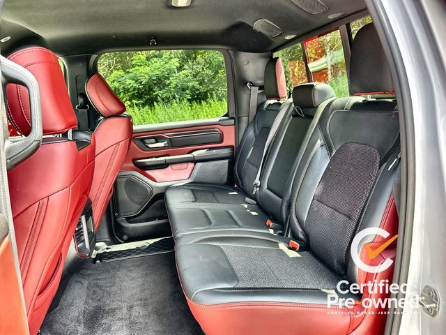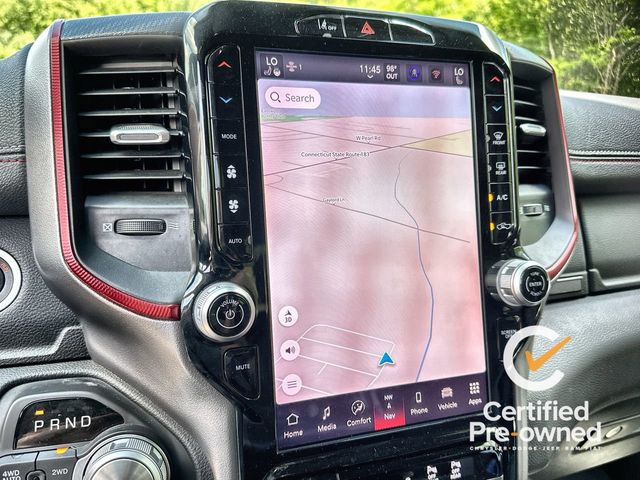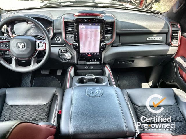 **Certified**, **4 Wheel Drive**, Bluetooth Phone/Audio, **Apple car play / Android Auto**, **LOCALLY OWNED AND TRADED**, 10 Speakers, 3.92 Rear Axle Ratio, 4 Way Front Headrests, 4-Wheel Disc Brakes, 4G LTE Wi-Fi Hot Spot, ABS brakes, Air Conditioning, Alloy wheels, AM/FM radio: SiriusXM with 360L, Apple CarPlay, Apple CarPlay/Android Auto, Auto High-beam Headlights, Auto Power-Folding Mirrors, Auto-Dimming Exterior Driver Mirror, Auto-dimming Rear-View mirror, Automatic temperature control, Black Premium Power Mirrors, Brake assist, Bucket Seats, Cloth/Vinyl Bucket Seats, Compass, Connected Travel & Traffic Services, Connectivity - US/Canada, Convex Wide-Angle Exterior Mirror Insert, Delay-off headlights, Driver door bin, Driver vanity mirror, Dual front impact airbags, Dual front side impact airbags, Electronic Stability Control, Exterior Mirrors Courtesy Lamps, Exterior Mirrors w/Heating Element, Exterior Mirrors w/Supplemental Signals, Front anti-roll bar, Front Bucket Seats, Front Center Armrest w/Storage, Front dual zone A/C, Front fog lights, Front reading lights, Front Seat Back Map Pockets, Front wheel independent suspension, Full Length Upgraded Floor Console, Fully automatic headlights, Garage door transmitter, Google Android Auto, GPS Antenna Input, GPS Navigation, Heated door mirrors, Heated front seats, Heated steering wheel, Illuminated entry, Integrated Voice Command w/Bluetooth, Leather steering wheel, Low tire pressure warning, Manual Folding Exterior Mirrors, Manufacturer's Statement of Origin, Navigation System, Occupant sensing airbag, Outside temperature display, Overhead airbag, Overhead console, Panic alarm, ParkView Rear Back-Up Camera, Passenger door bin, Passenger vanity mirror, Power Adjust 8-Way Driver Seat, Power Adjustable Pedals, Power door mirrors, Power driver seat, Power steering, Power windows, Quick Order Package 21W Rebel, Radio data system, Radio: Uconnect 5 Nav w/12.0" Display, Rear 60/40 Folding Seat, Rear anti-roll bar, Rear seat center armrest, Rear step bumper, Rear Window Defroster, Rebel Level 1 Equipment Group, Remote keyless entry, Remote Tailgate Release, SiriusXM w/360L, Speed control, Split folding rear seat, Steering wheel mounted audio controls, Tachometer, Telescoping steering wheel, Tilt steering wheel, Traction control, Trip computer, USB Host Flip, Variably intermittent wipers, Voltmeter, Wheels: 18" x 8.0" Painted Mid-Gloss Black, Wireless Charging Pad.