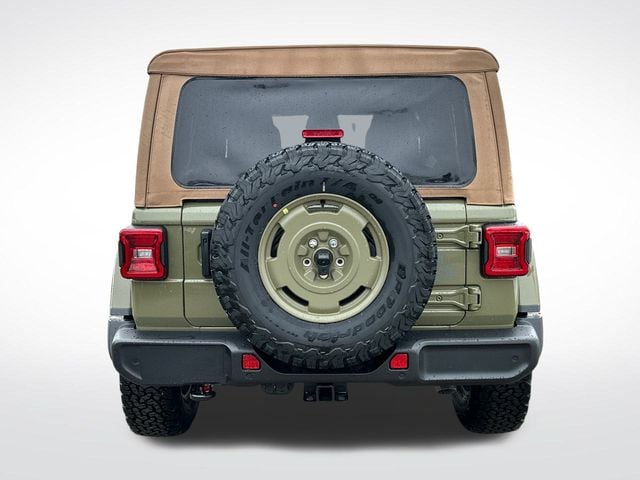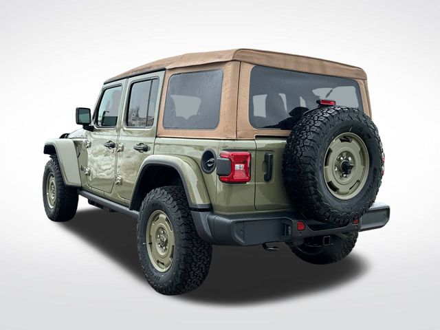 2-Door Passive Entry, Front Door Locks, 4.10 Rear Axle Ratio, 4WD Willys '41 Swing Gate Decal, 7 and 4 Pin Wiring Harness, 97 MPH Vehicle Max Speed Calibration, ABS brakes, Adaptive Cruise Control with Stop, Advanced Brake Assist, Air Conditioning with Auto Temp Control, Air Filtering, Apple CarPlay/Android Auto, Auto High Beam Headlamp Control, Automatic Headlamps, Auxiliary Switches, Blind Spot and Cross Path Detection, Body Color Grille with Gloss Black Rings, Body Color Rubicon Highline Flare, Class II Receiver Hitch, Cloth Low-Back Bucket Seats, Cluster 7.0" TFT Color Display, Compass, Convenience Group, Conventional Differential Front Axle, Corning Gorilla Glass, Dana M210 Wide HD Tube Front Axle, Dana M220 Wide Rear Axle, Daytime Running Lamps LED Accents, Deep Tint Sunscreen Windows, Dual front impact airbags, Dual front side impact airbags, E-Locker Rear Axle, Electronic Stability Control, Emergency/Assistance Call, Front anti-roll bar, Front LED Fog Lamps, Full Speed Forward Collision Warning Plus, Heated Front Seats, Heated Steering Wheel, Injection Molded Black Rear Bumper, Integrated roll-over protection, LED Premium Reflector Headlamps, LED Taillamps, MOPAR All-Weather Floor Mats, Occupant sensing airbag, Off-Road Plus Mode, Overhead airbag, ParkSense Rear Park Assist System, ParkView Rear Back-Up Camera, Power Dome Dual Vented Hood, Power Heated Mirrors, Premium Tan Sunrider Soft Top, Premium Wrapped Steering Wheel, Quick Order Package 24H Willys 41, Rear anti-roll bar, Safety Group, Security Alarm, Speed control, Steel Front Bumper, Steel Power Dome Hood Package, Steel Rear Bumper, Sun Visors with Illuminated Vanity Mirrors, Universal Garage Door Opener, Wheels: 17" x 7.5" Fully Painted, Willy's Suspension, Willys '41 Retro Edition Buzz Model, Willys '41 Retro Edition Hood Decal, Willys '41 Retro Edition Tailgate Plaque, Willys '41 Retro Edition Wrangler Decal, Willys '41 Retro Shift Bezel Insert, Willys '41 US Edition U.S. Hood Decal.